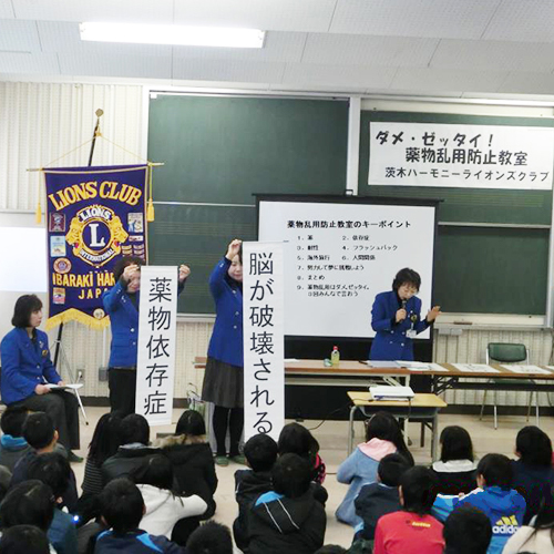 小中学校へ出向き、薬物乱用防止教室を開催しています。認定講師のライセンスを取得した会員が地域の子ども達に薬物の怖さや誘惑から逃れる方法などを紙芝居や寸劇を交えて身近な目線で語りかけています。様々な所で「薬物乱用防止パレード」で「薬物乱用ダメ。ゼッタイ。」を呼びかけています。