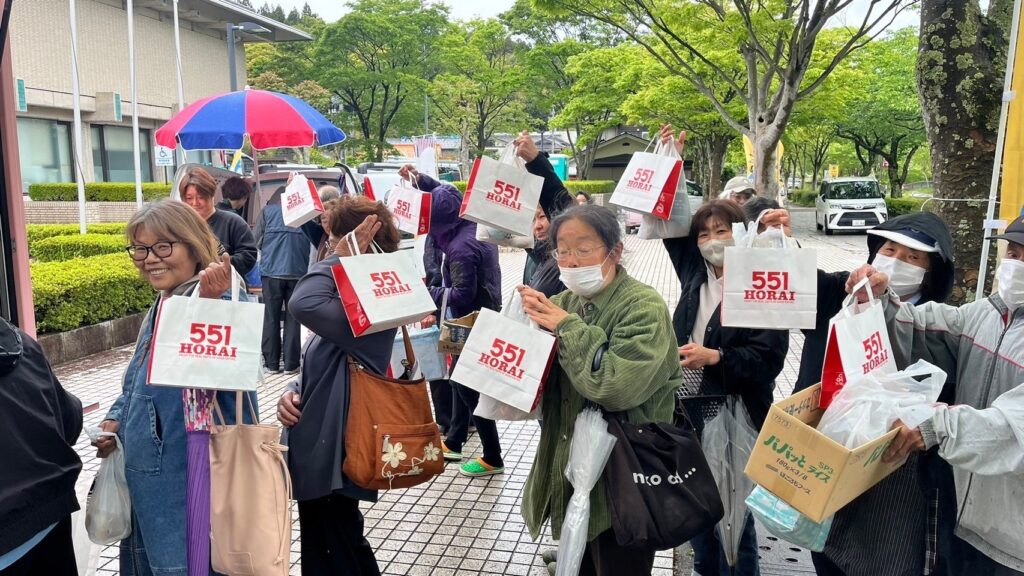 総数は、キッチンカー軍団 525食、地元商店 160食、551豚まん250セット(500個)