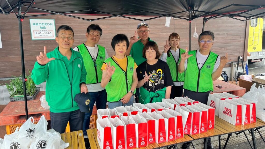 そして本日の「キッチンカーメニュー」は、ハンバーガー、スパイスカレー、ホットサンド各100食、デザートのクレープ200食とフルーツ飴200食 計700食 恒例の551豚まんは守口LCで本日分300個(150セット)を配布いたしました。